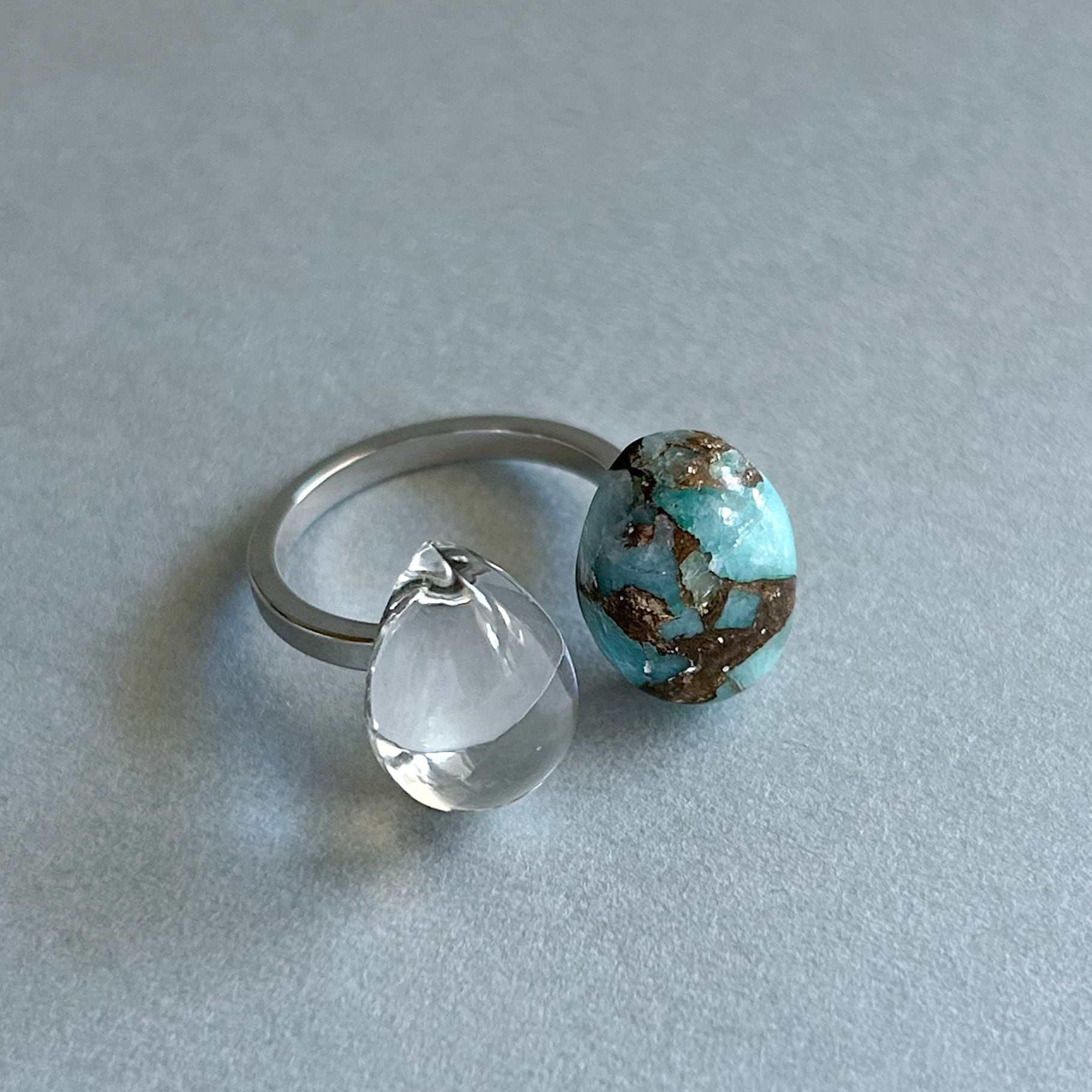 ちゅるんとしたうるつやな水晶は水面のキラキラを思わせる美しいリングです。