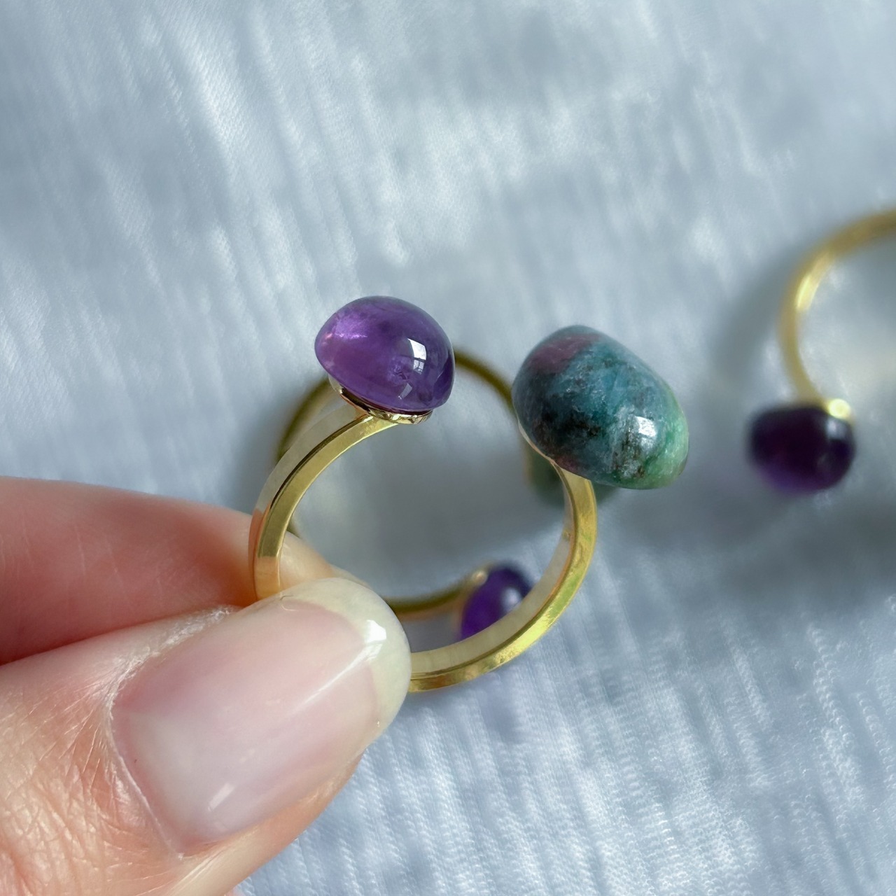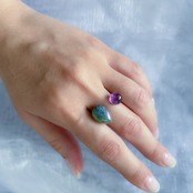 発色の良いパープルカラーのアメジストを組み合わせたオープンリング