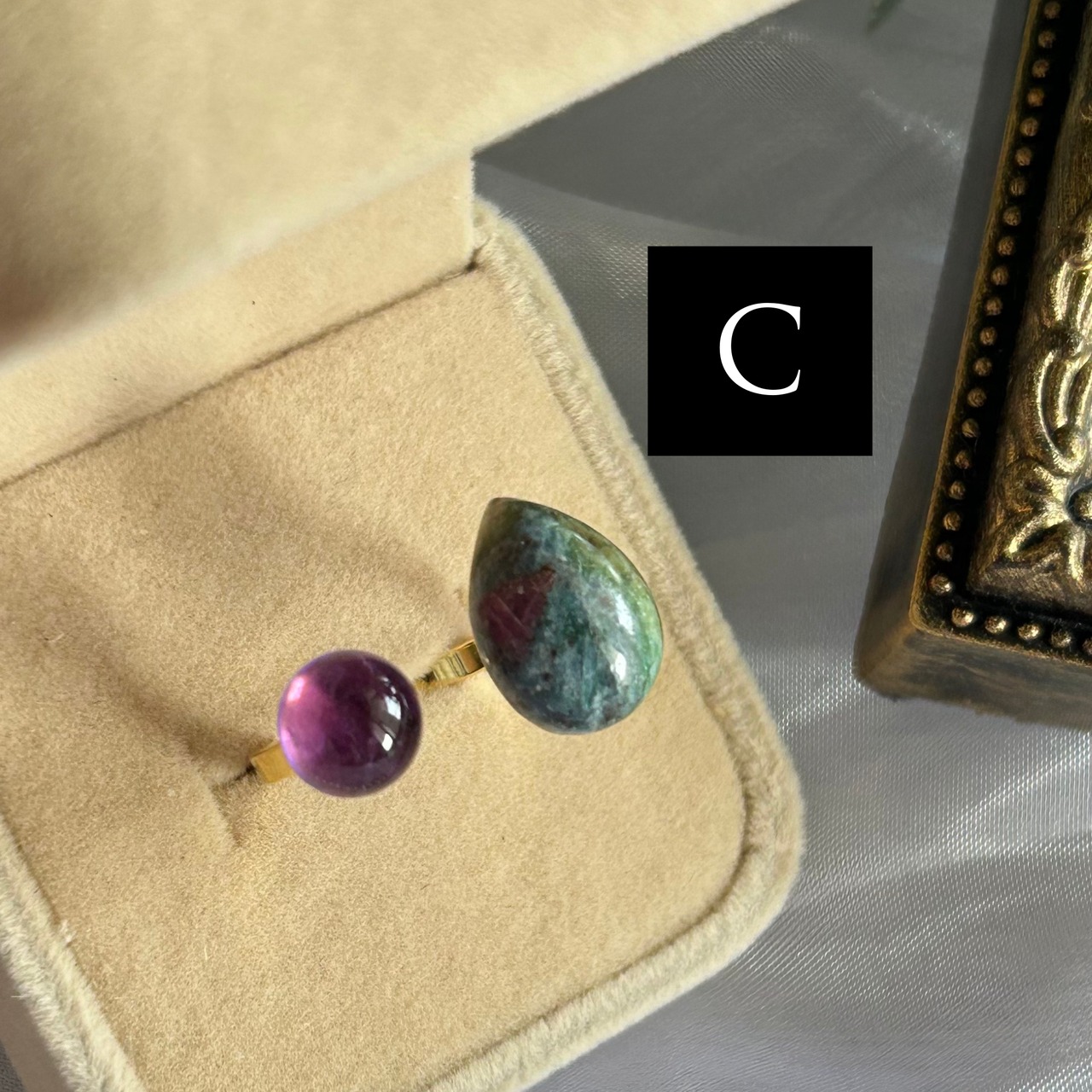それぞれの石単体だと渋すぎたり可愛すぎたりしますが、この2つを組み合わせることで落ち着いた雰囲気でエレガントなリングへと仕上がりました。