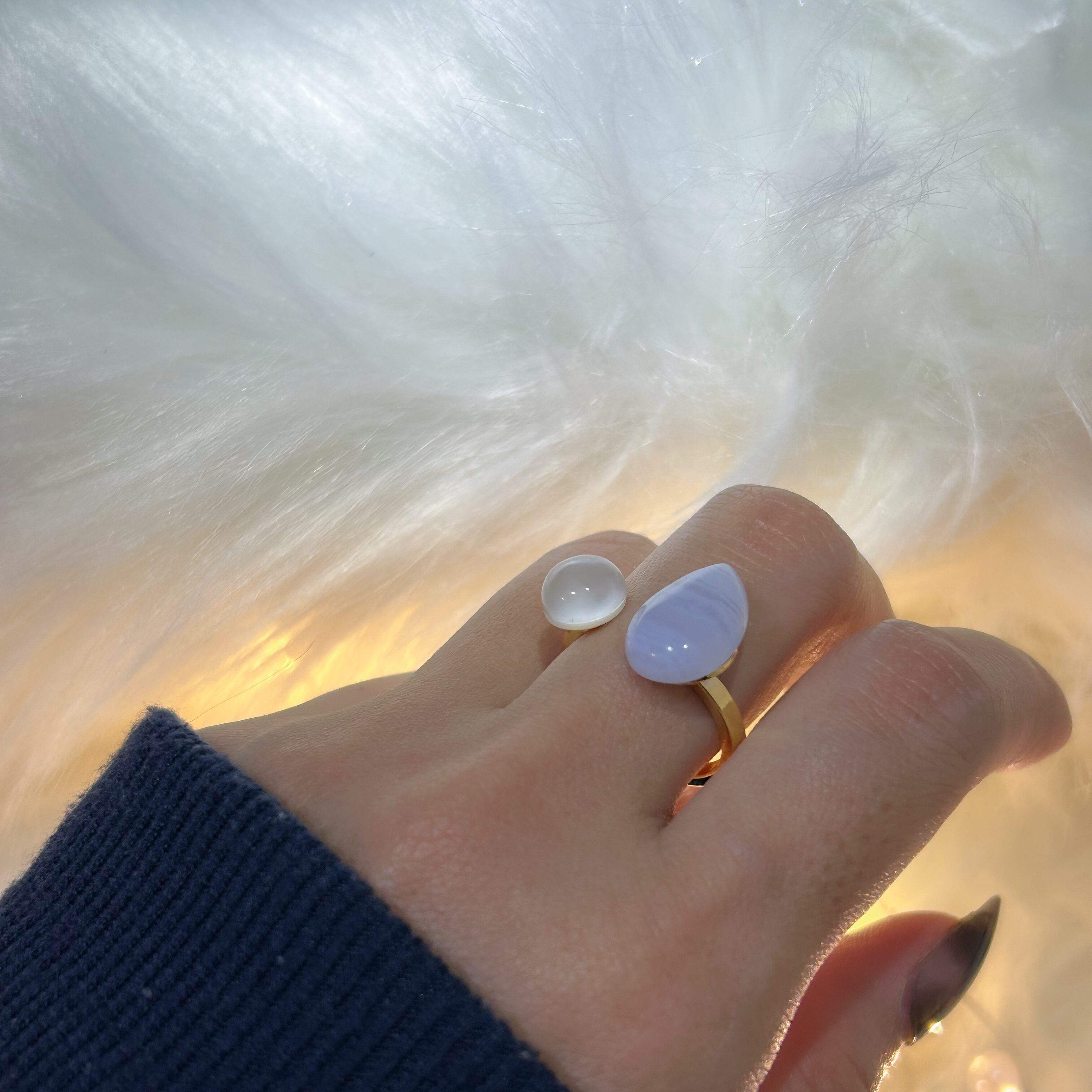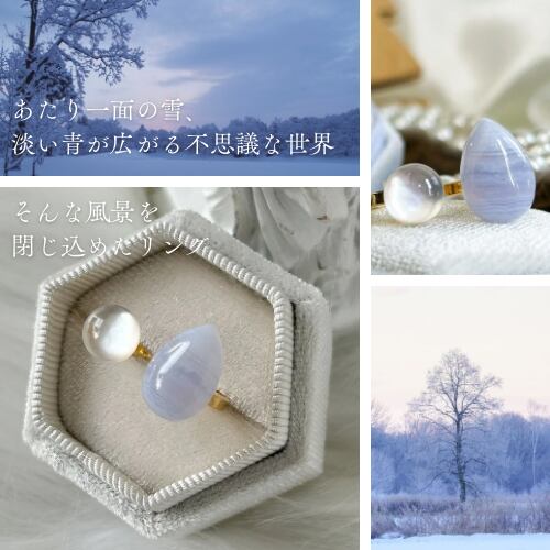 冬をイメージし、淡い色合い同士の天然石でとても可愛らしいリングへと仕上がりました。