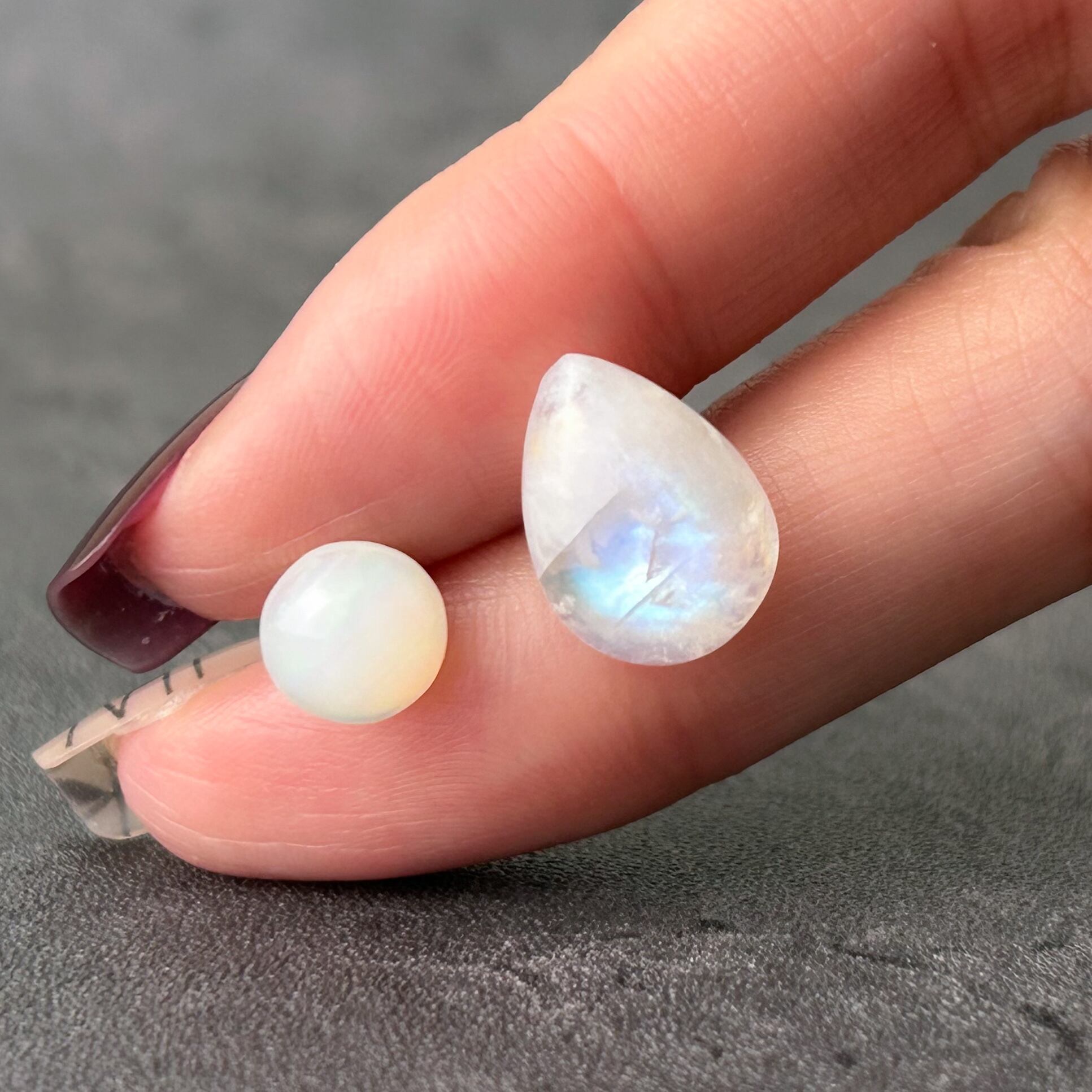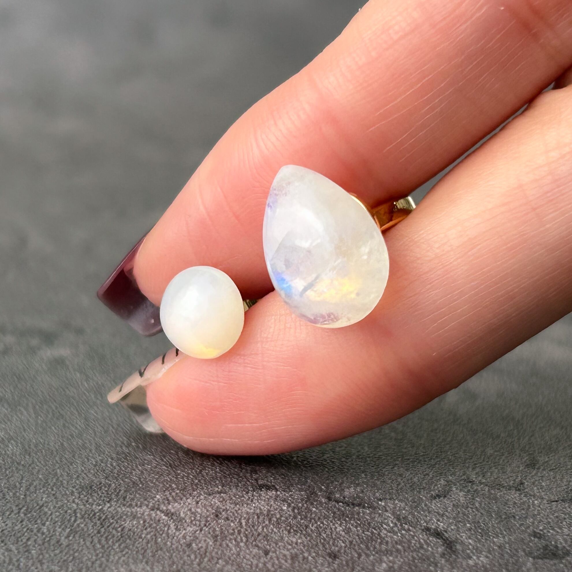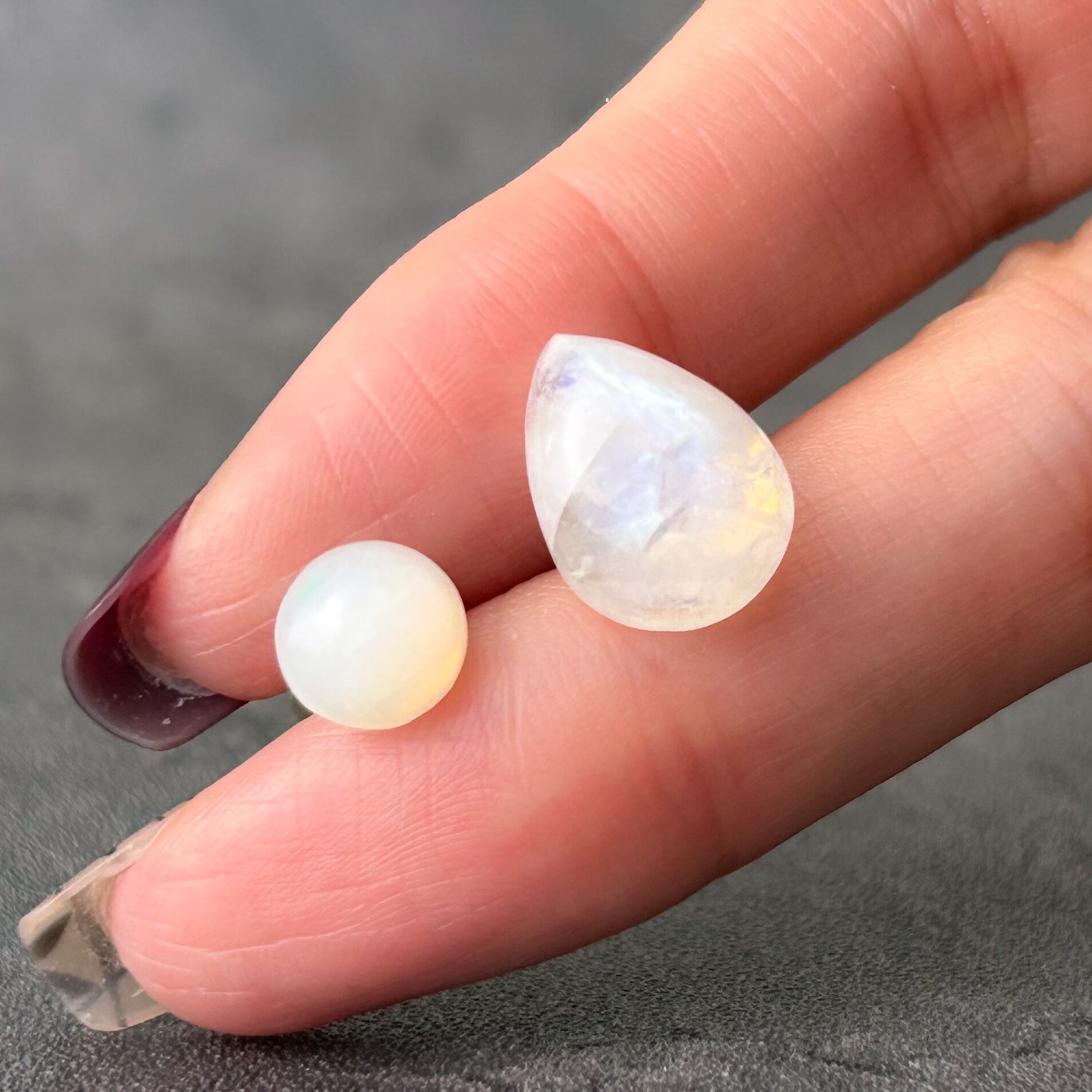 ムーンストーンやオパールの七色の輝きは個体によって異なります。そのため全く同じものをご用意することができません。