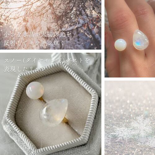 ムーンストーンやオパールの七色にキラめく様を、スノーダスト(ダイヤモンドダスト)を表現。