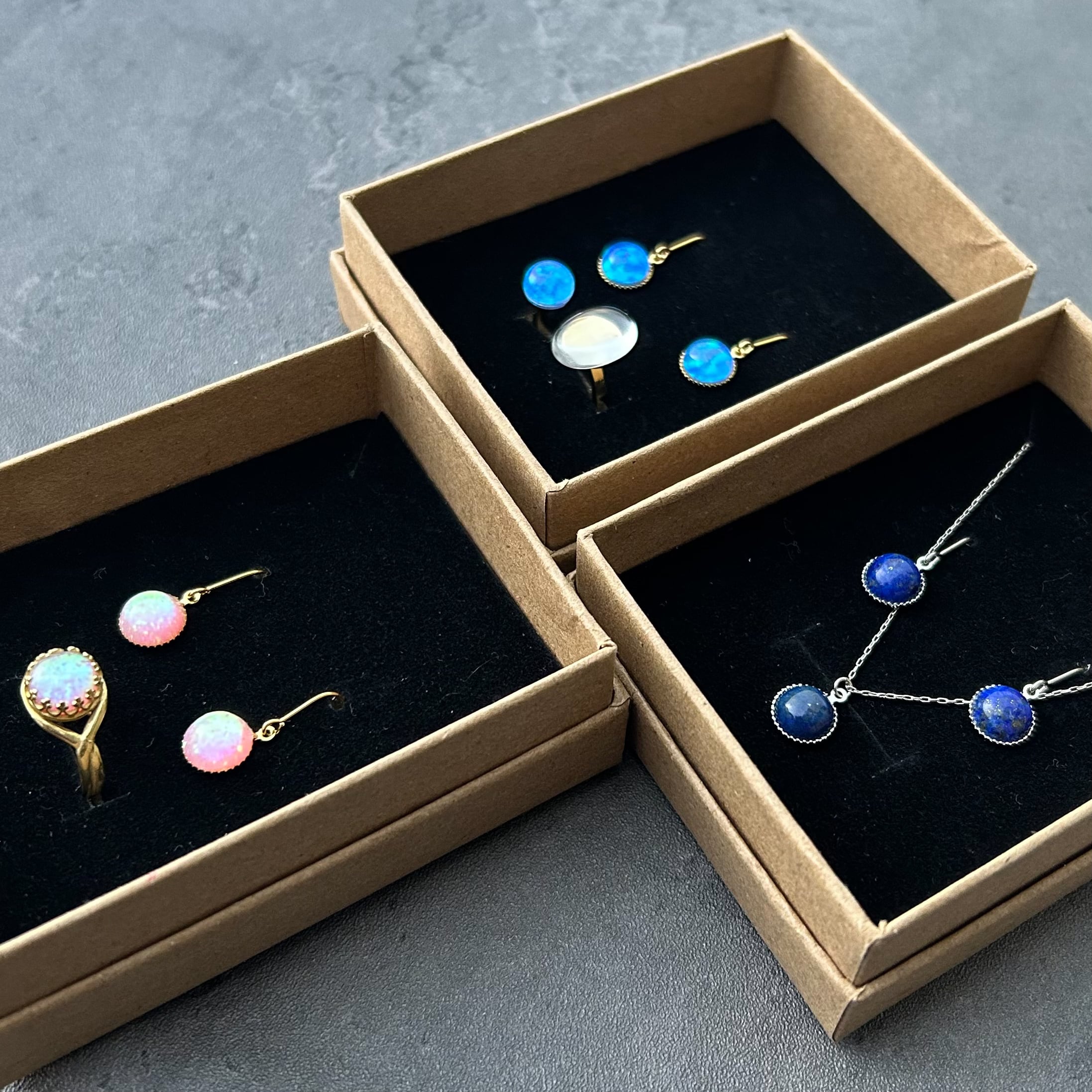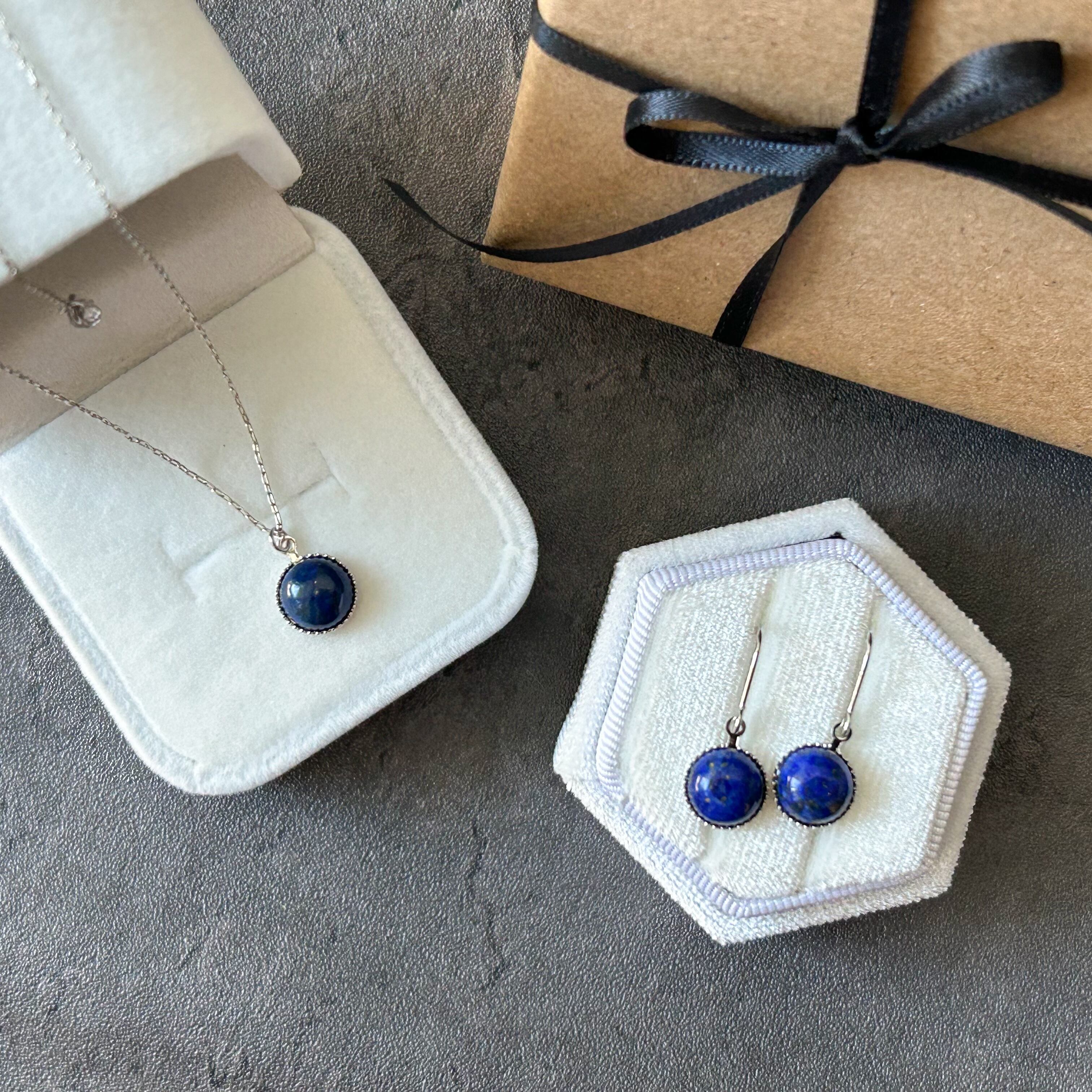 ラピスラズリを使ったピアスとペンダントのウインターコフレです。