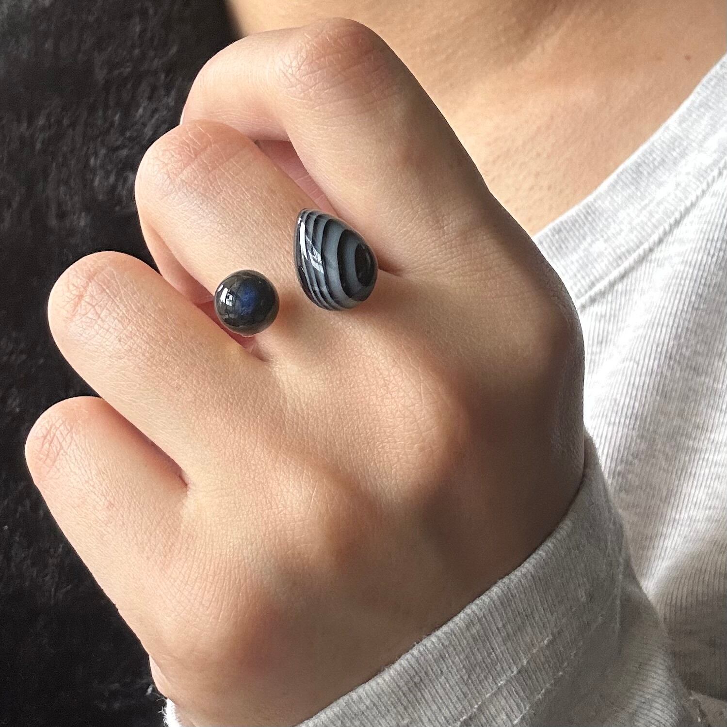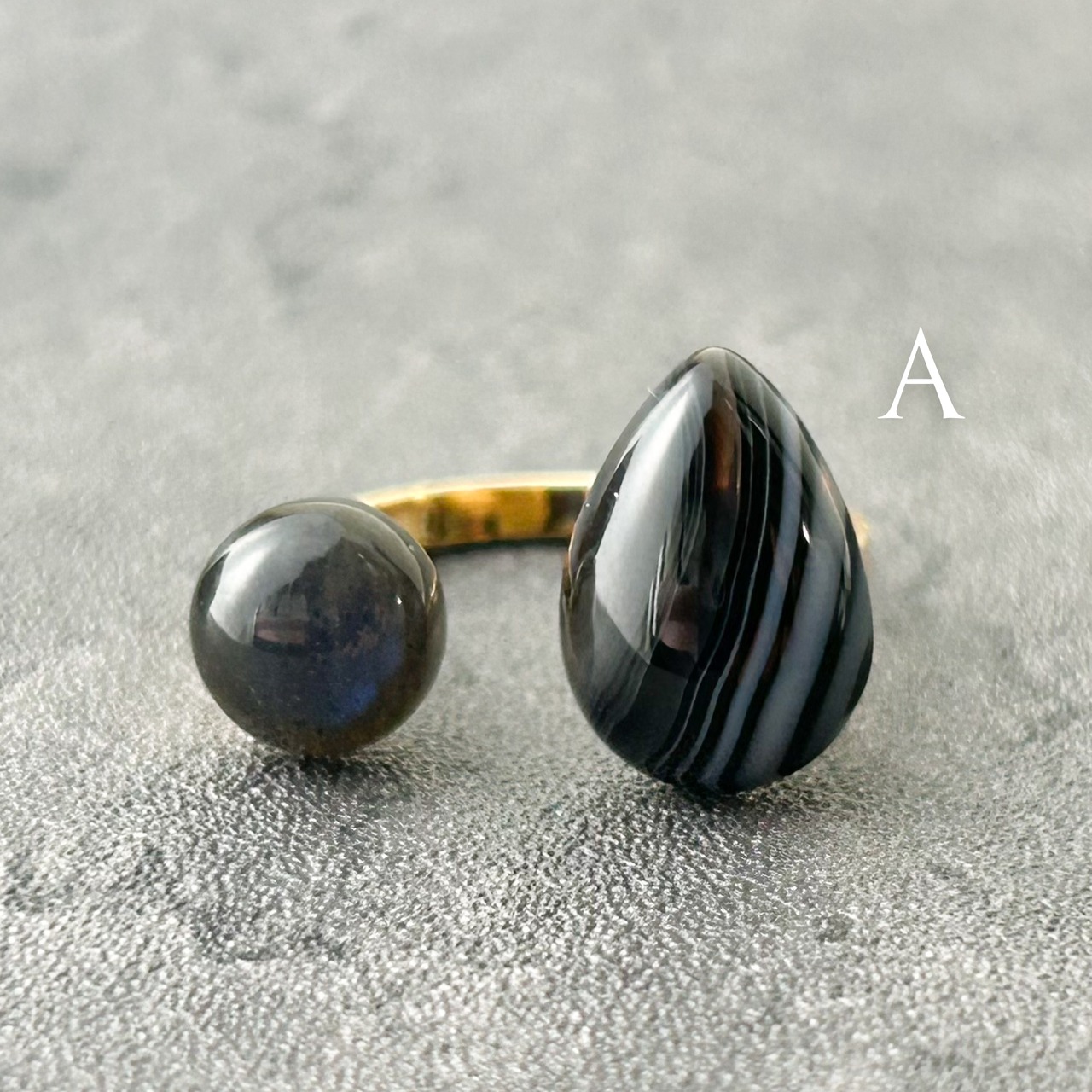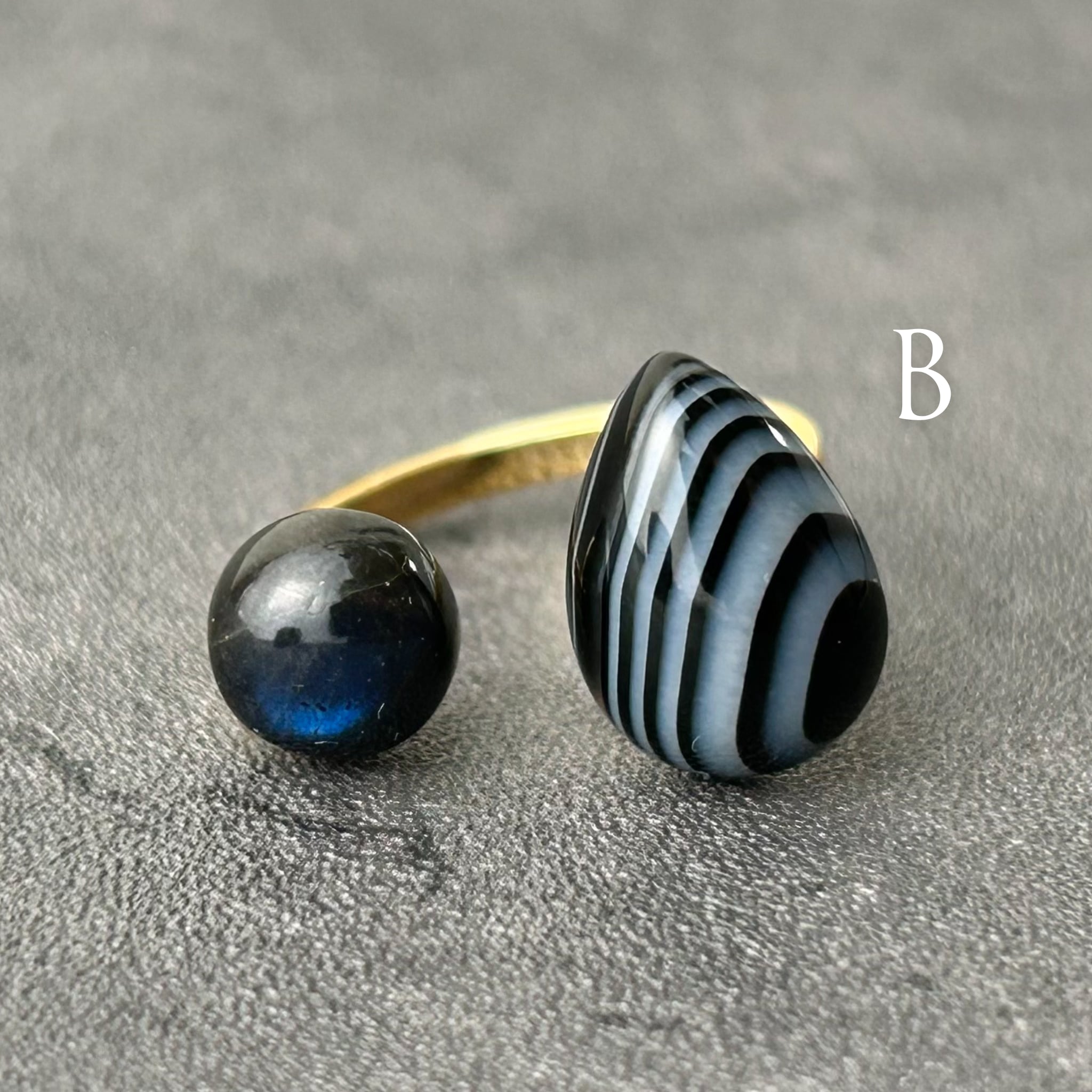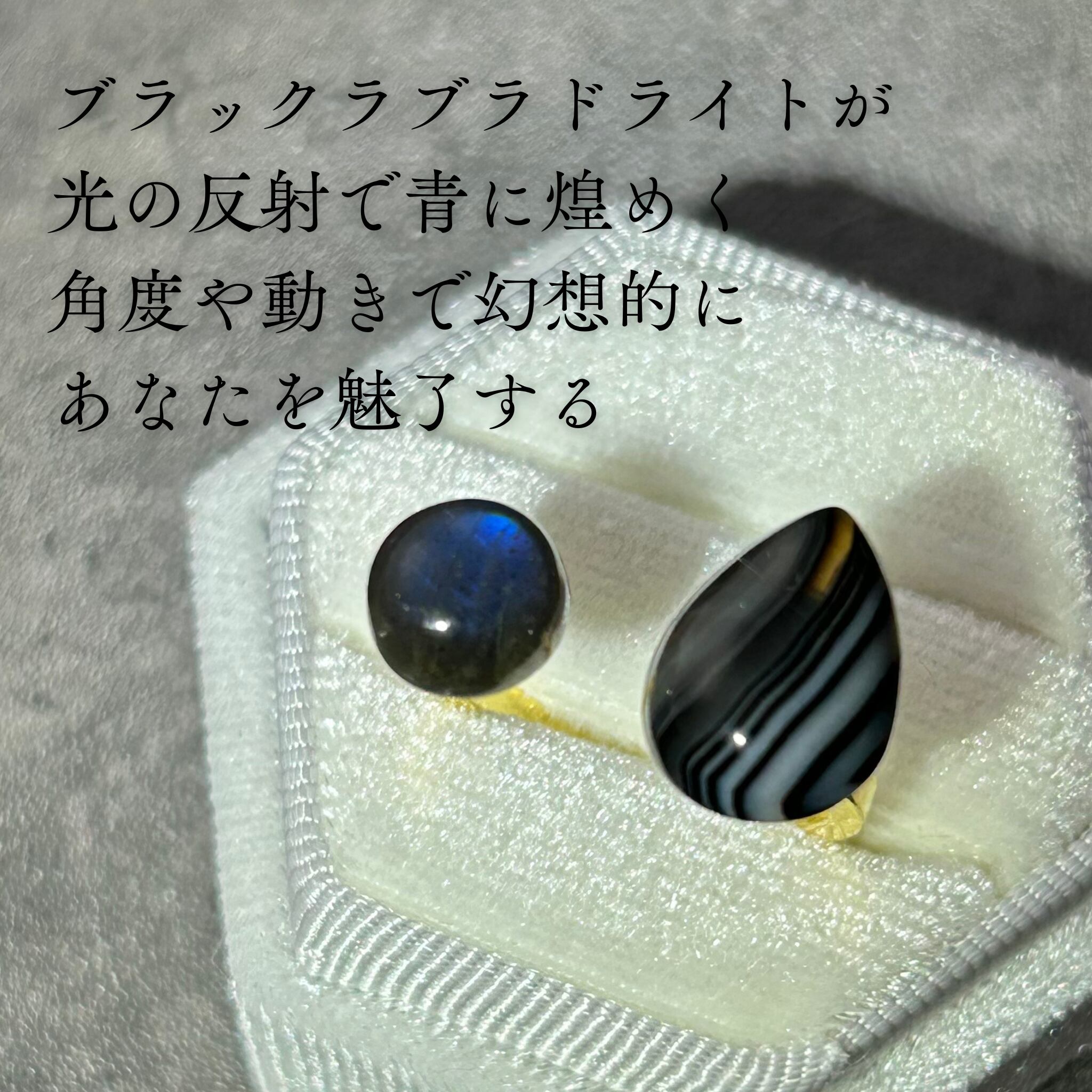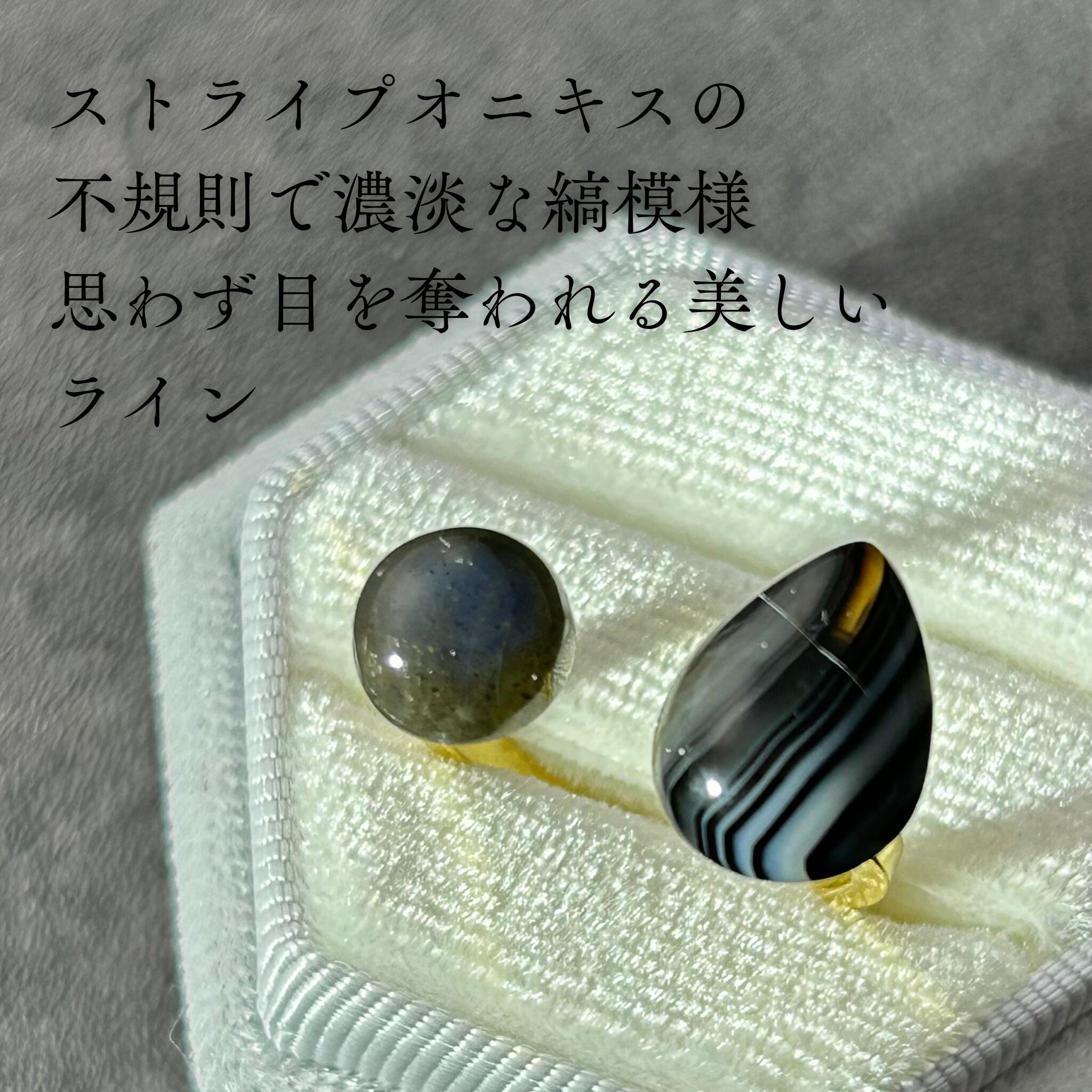 * サイズ: ストライプオニキス(約14×10mm)、ブラックラブラドライト(約8×8mm)
