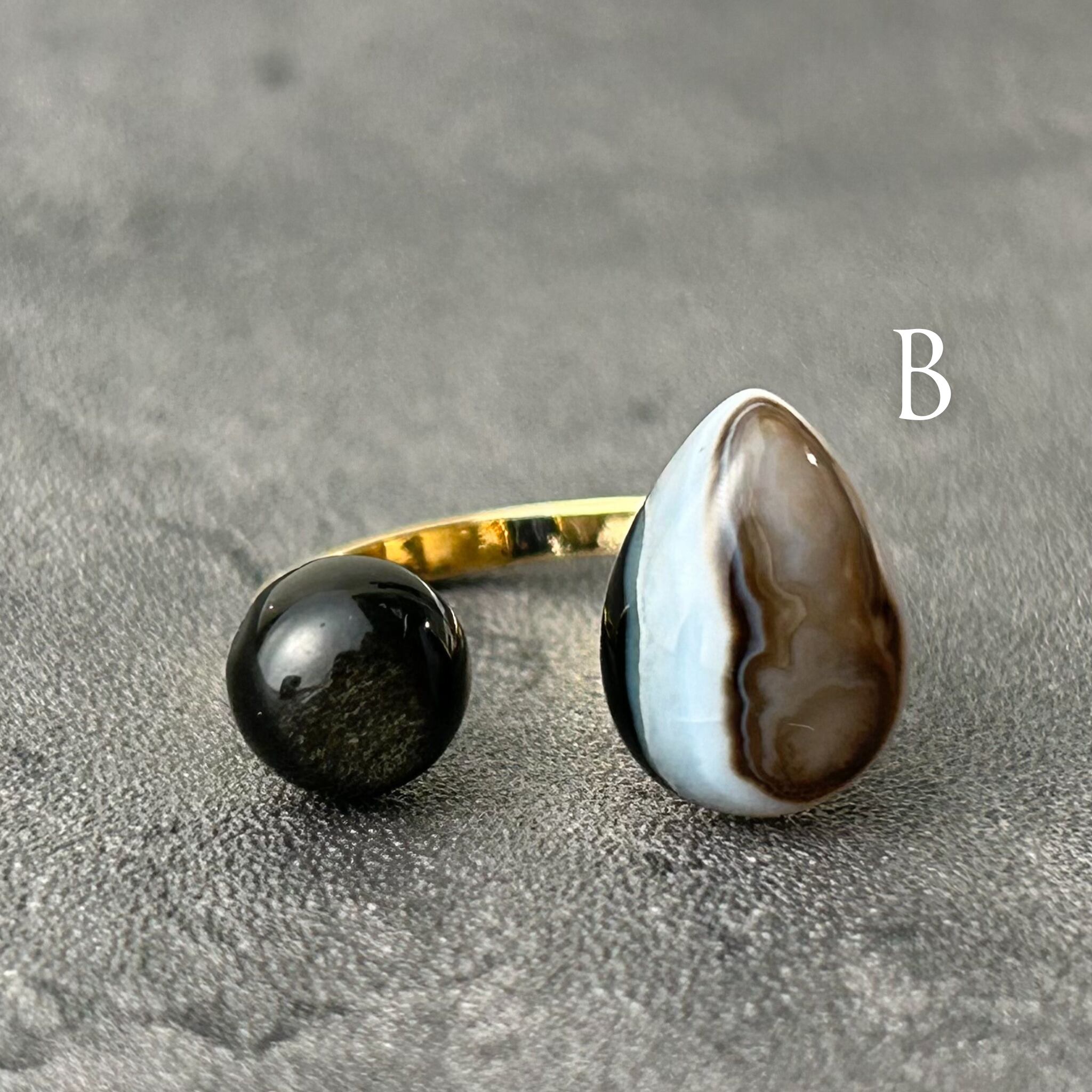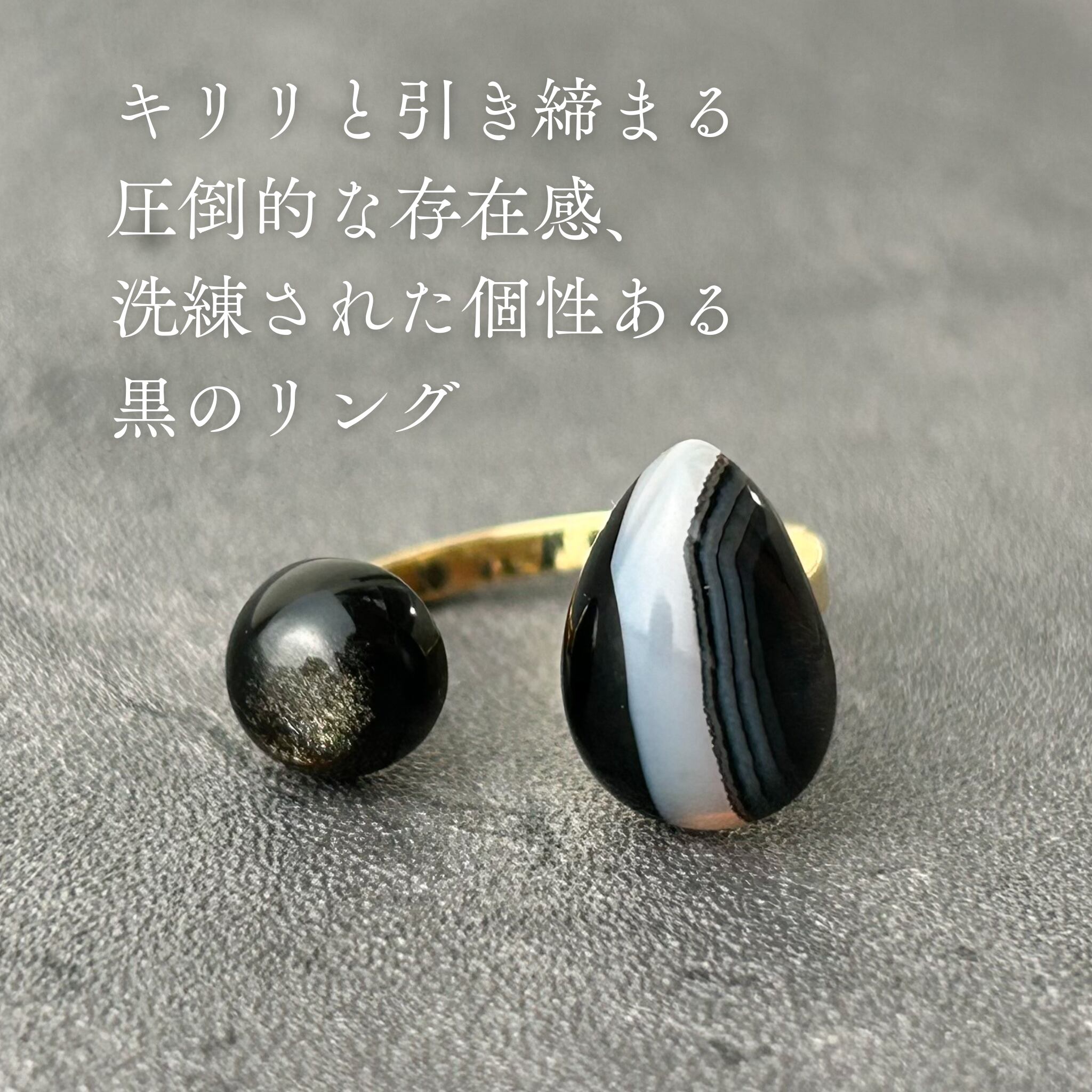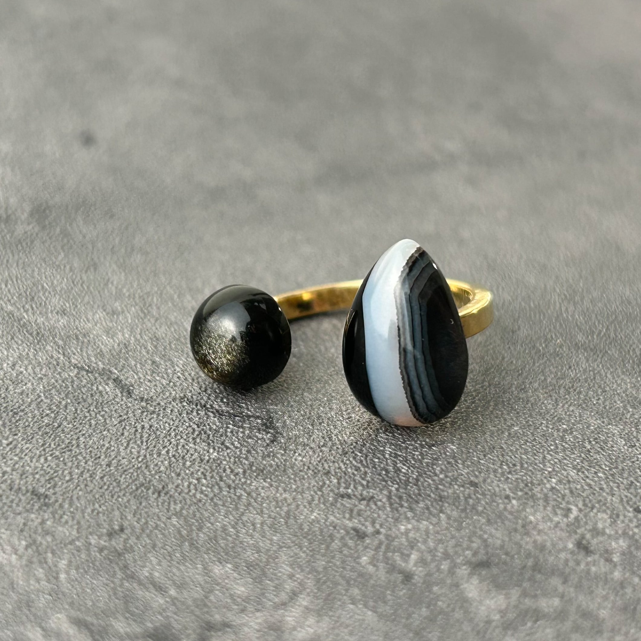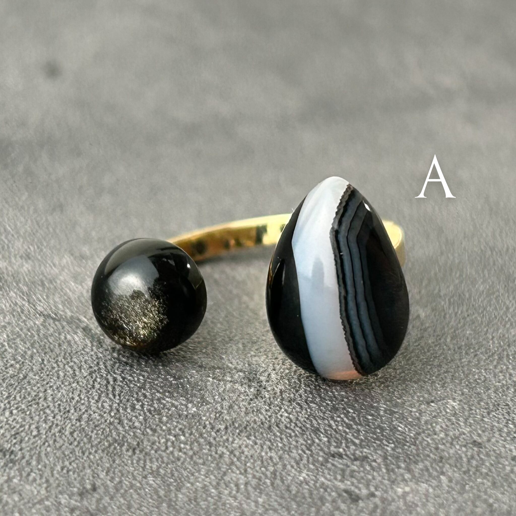 【 a i s h u 】ストライプオニキス×ゴールデンオブシディアン メンズライク | 甘くない大人のためのオープンリング プチギフト◎ご褒美に | a i s h u | 甘くない、大人のための天然石ジュエリー