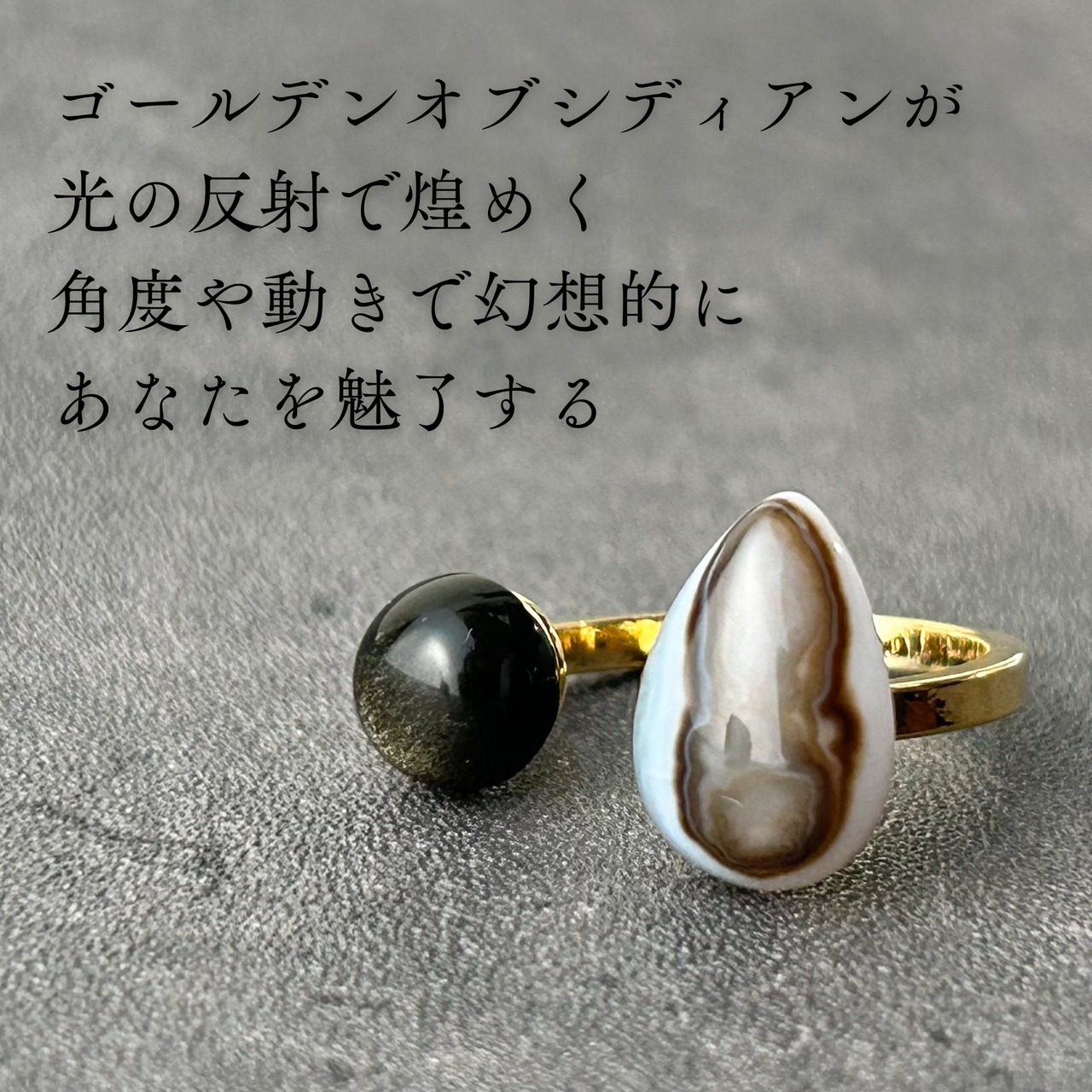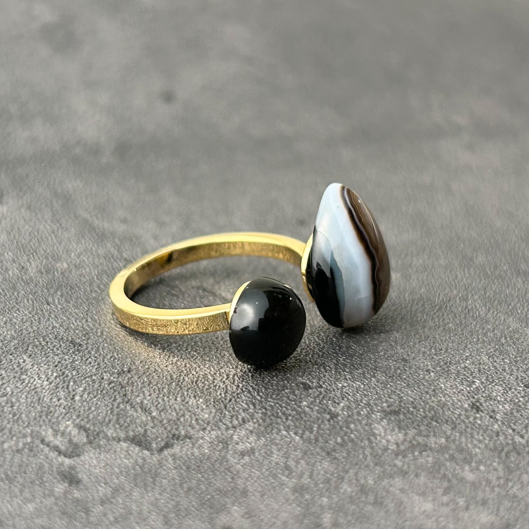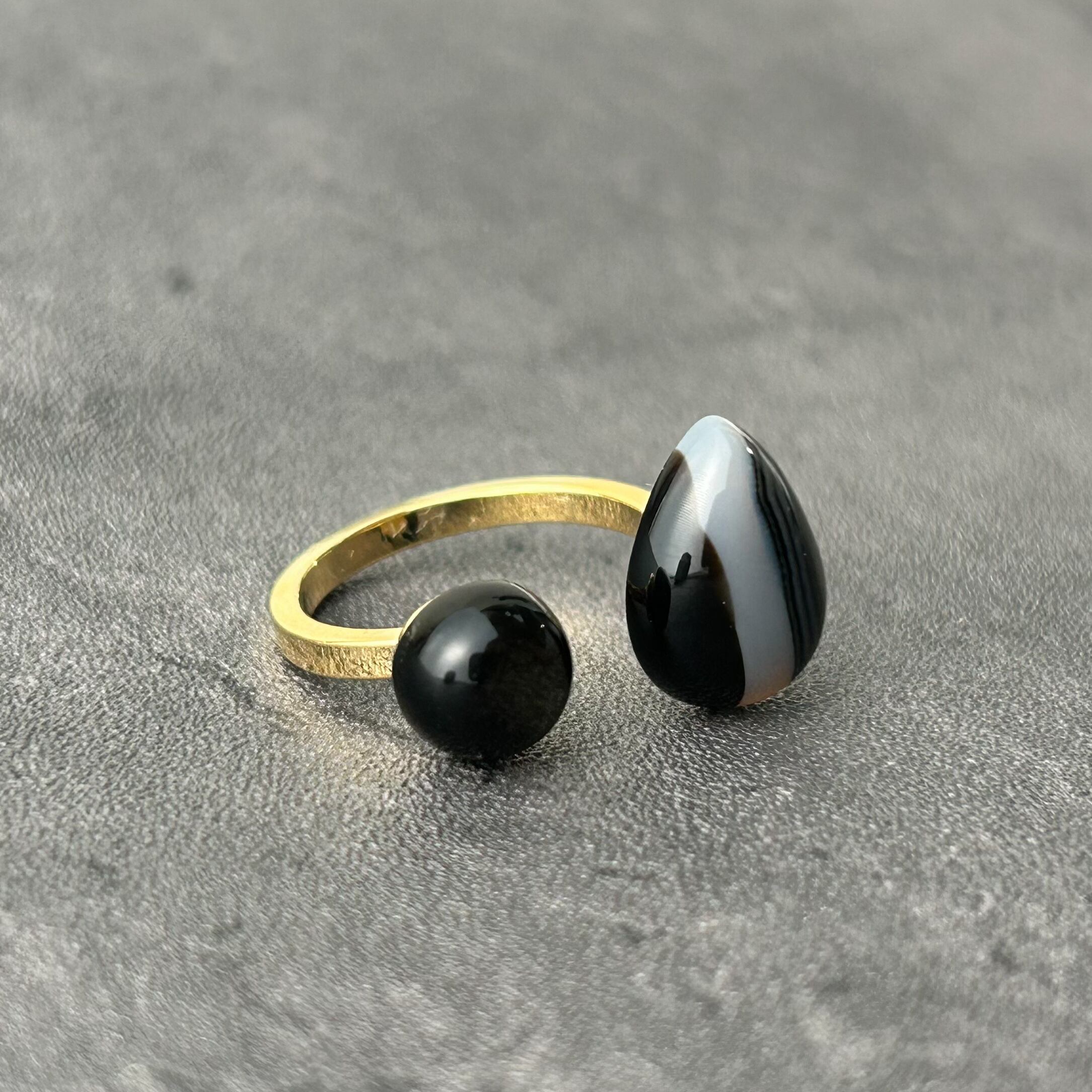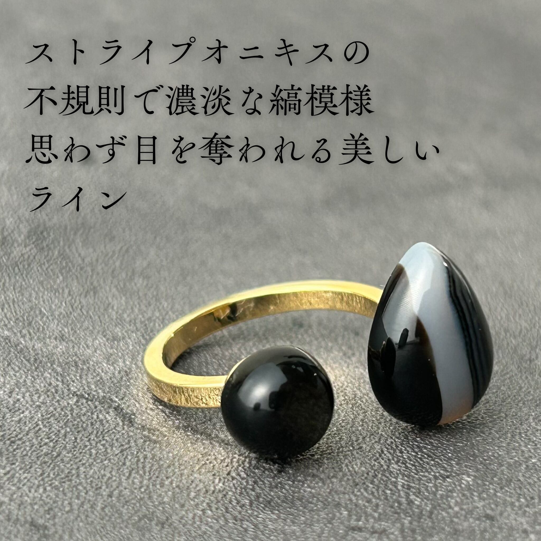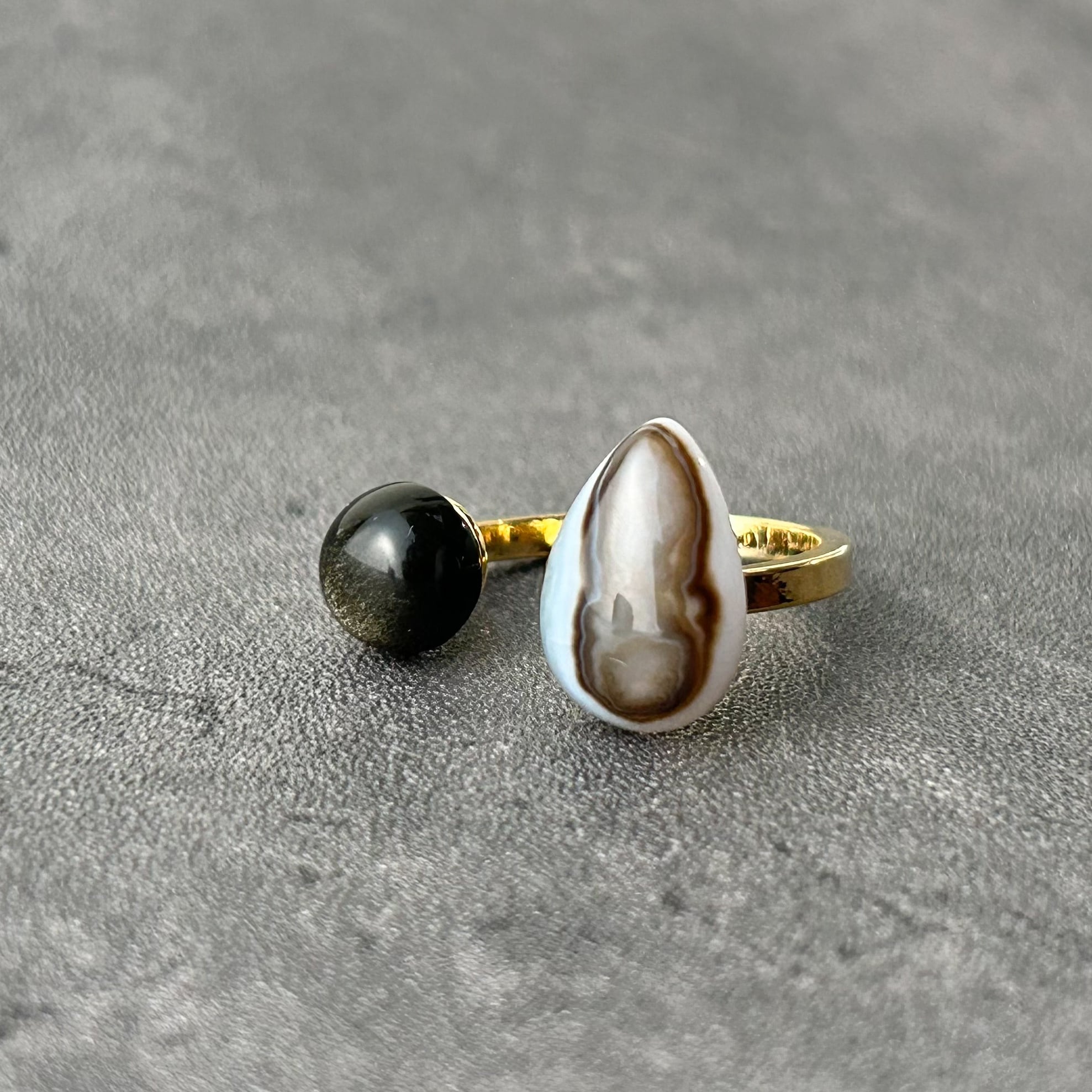 【 a i s h u 】ストライプオニキス×ゴールデンオブシディアン メンズライク | 甘くない大人のためのオープンリング プチギフト◎ご褒美に | a i s h u | 甘くない、大人のための天然石ジュエリー