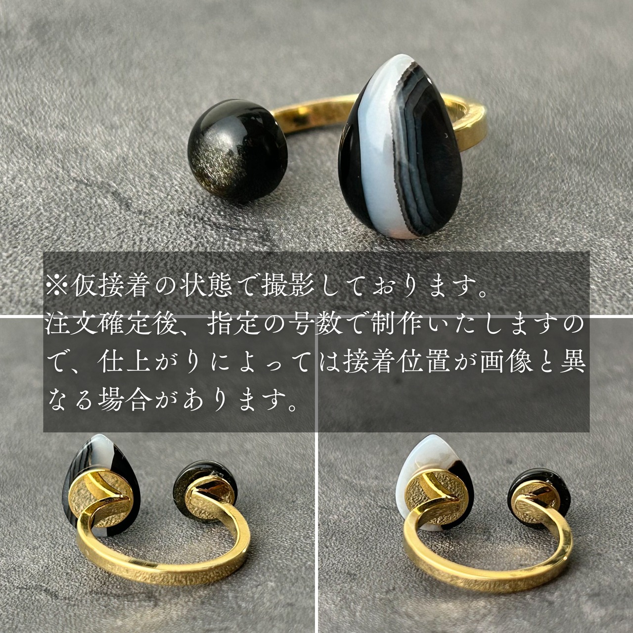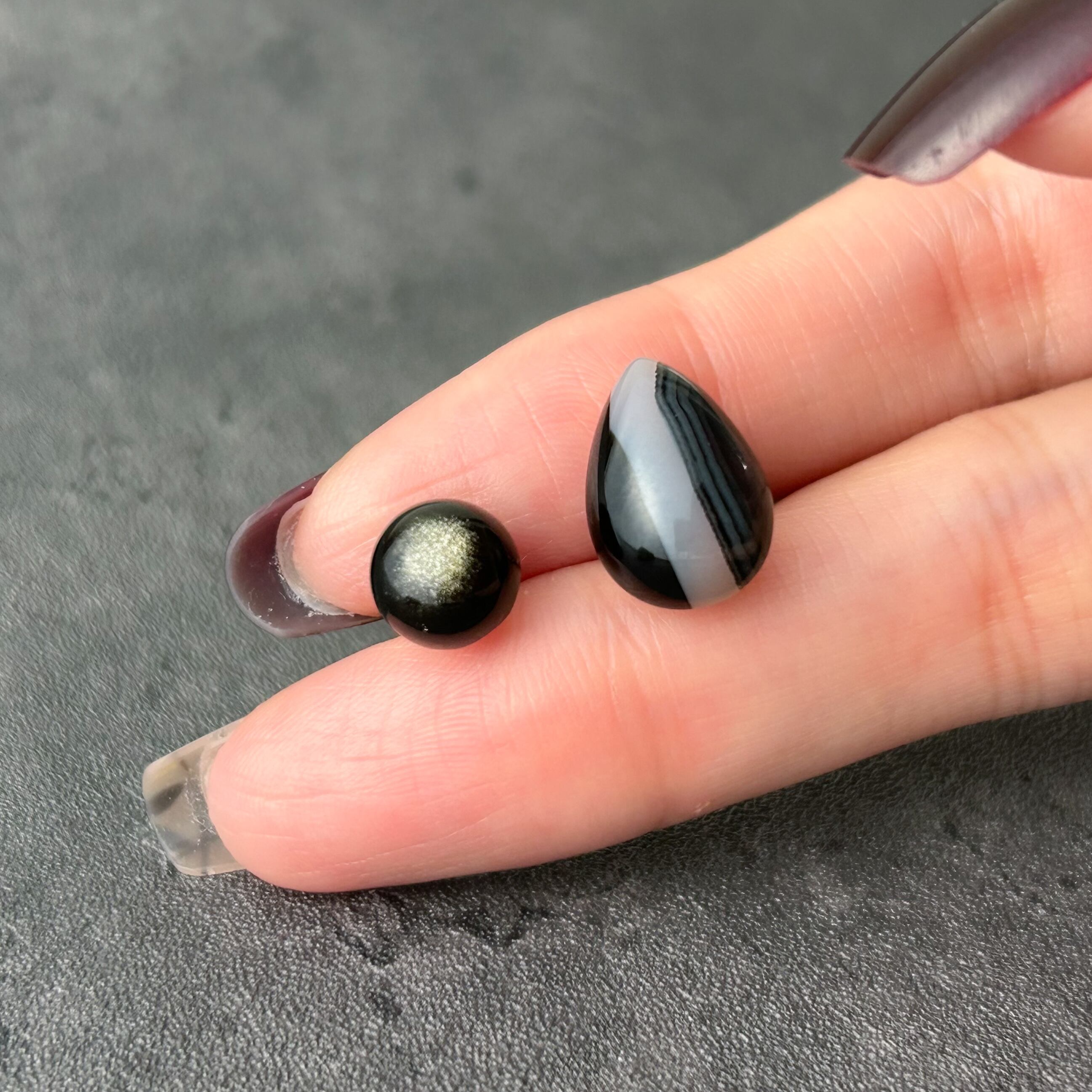 * サイズ: ストライプオニキス(約14×10mm)、ゴールデンオブシディアン(約8×8mm)