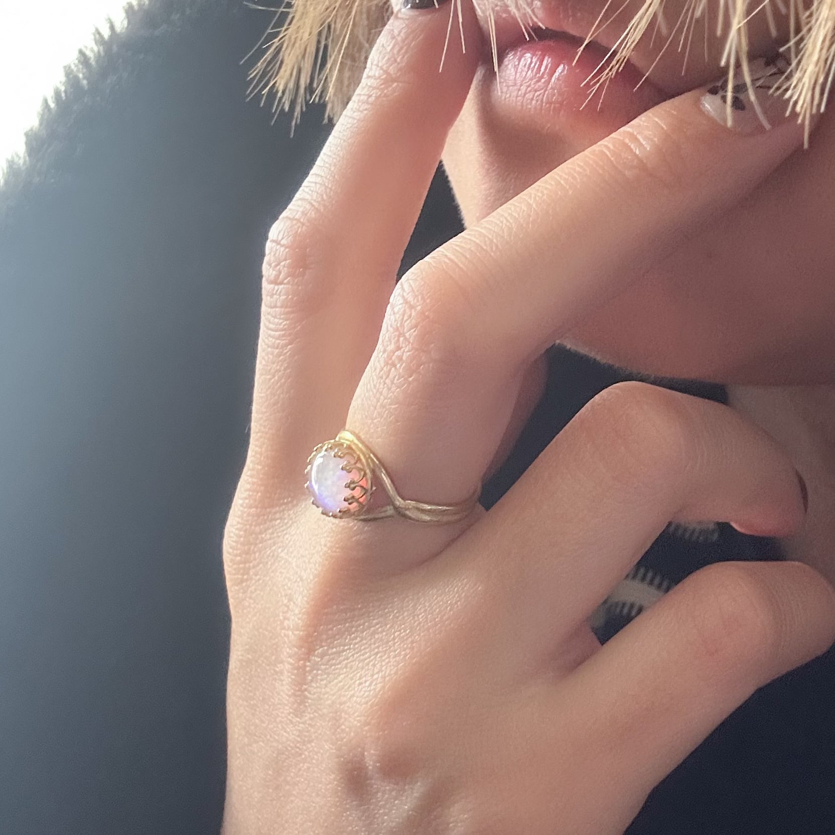 リングは縁がクラウンの台座を使い繊細な印象になるよう仕上げました。