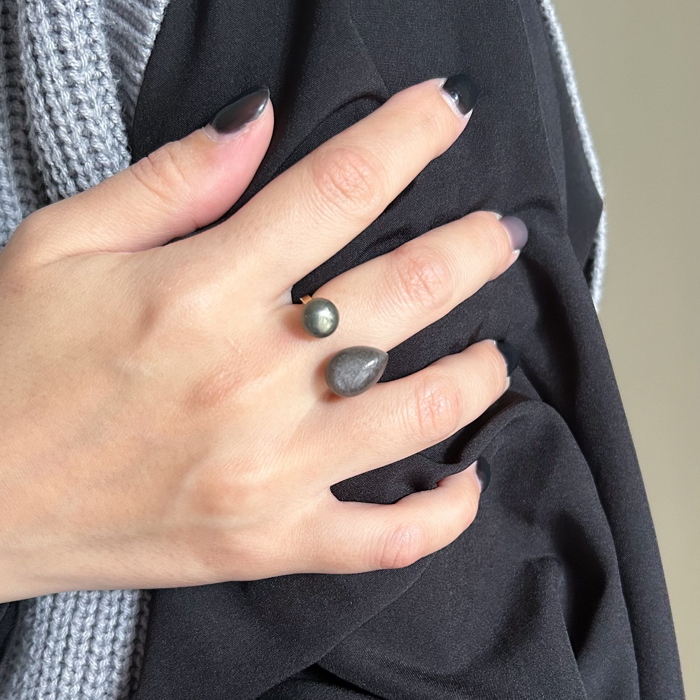 都会の夜の静寂を指元に閉じ込めたような、ハンサムな一粒です。