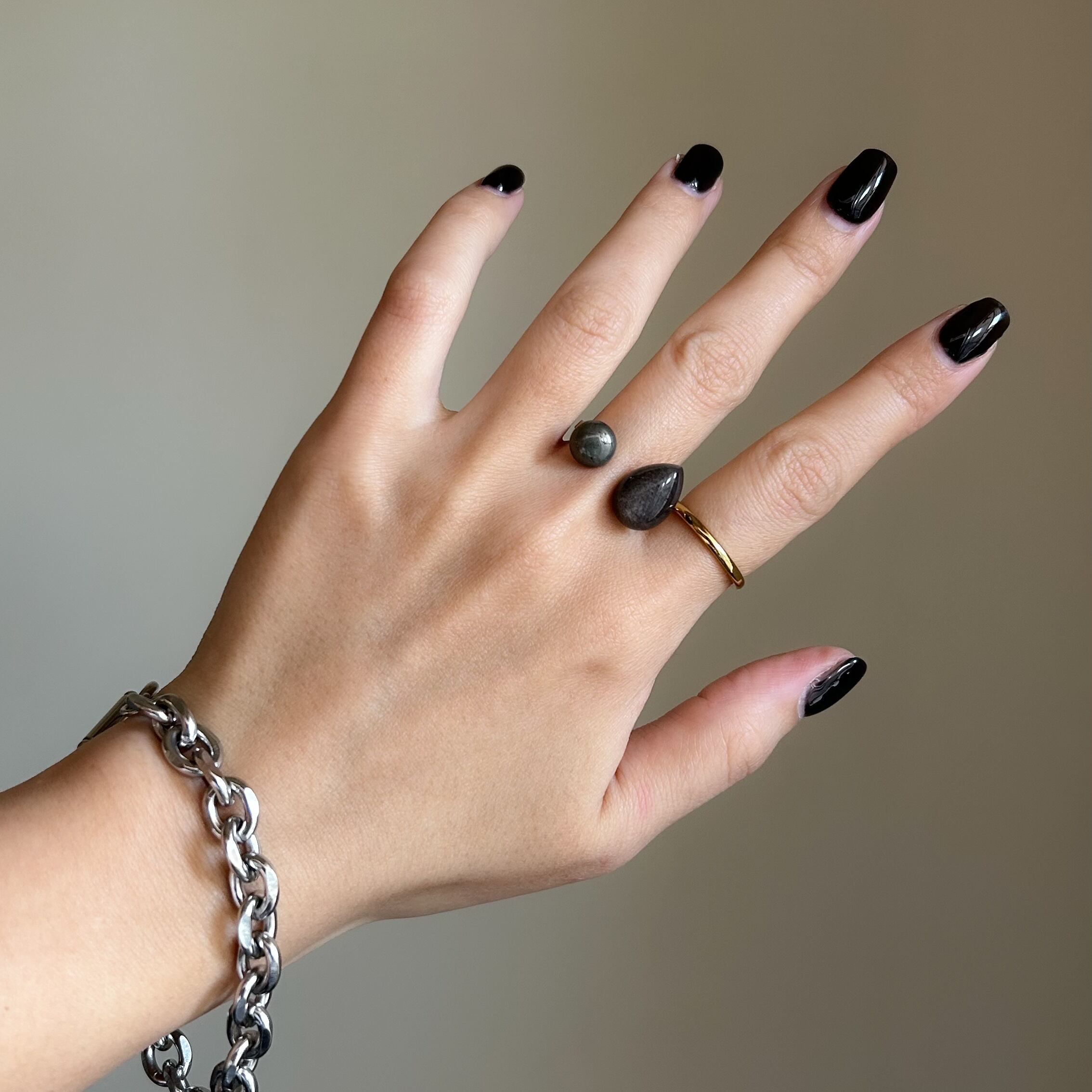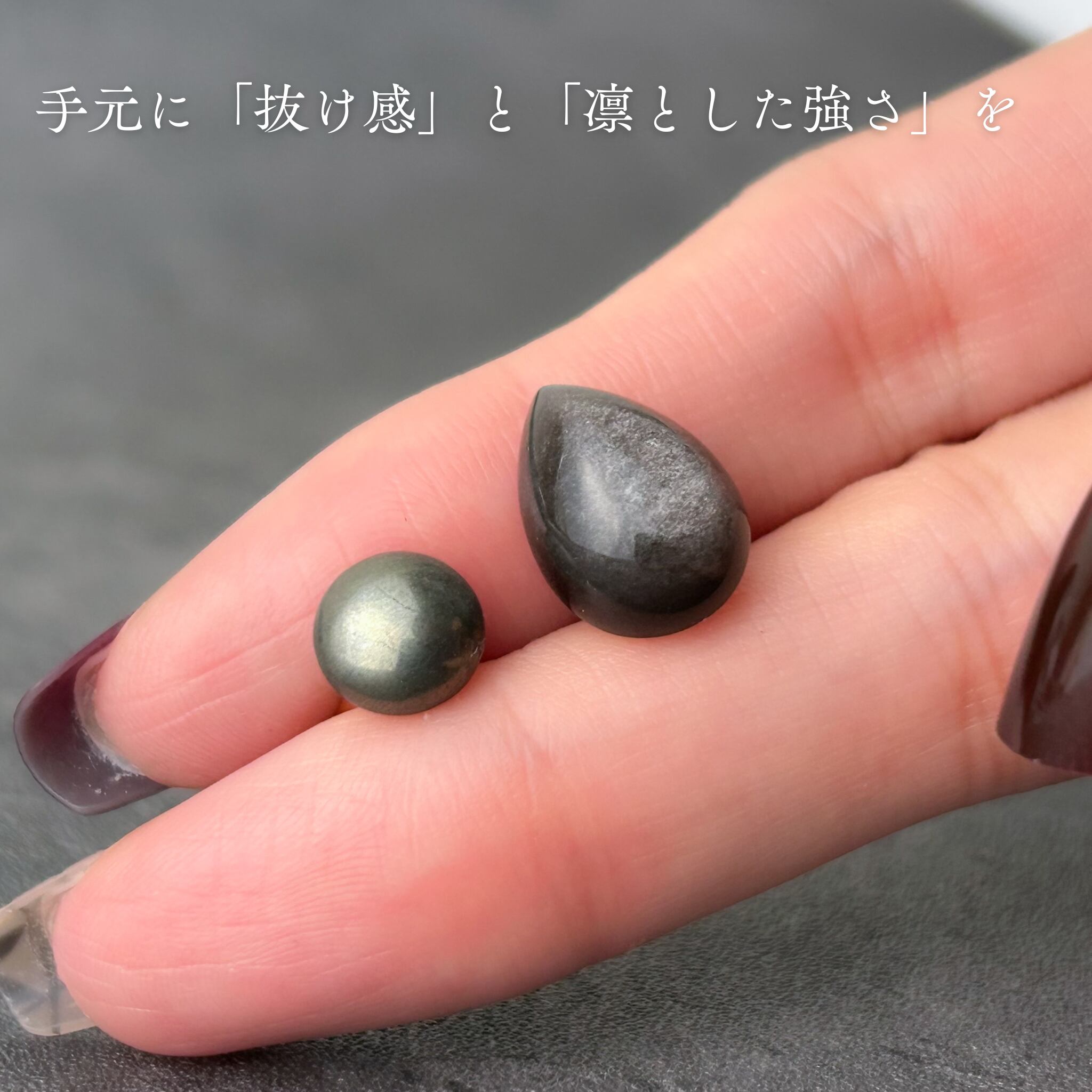 • シルバーオブシディアン: 光の角度によって銀色のシラー(輝き)が現れる神秘的な石。