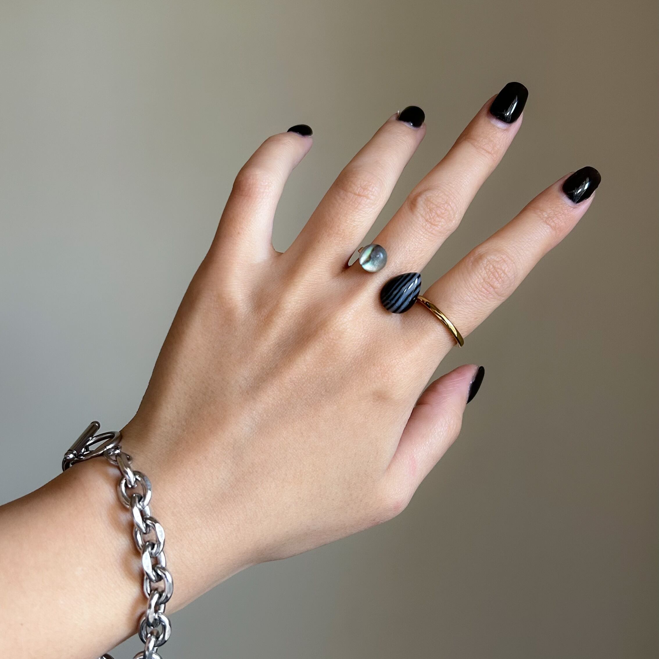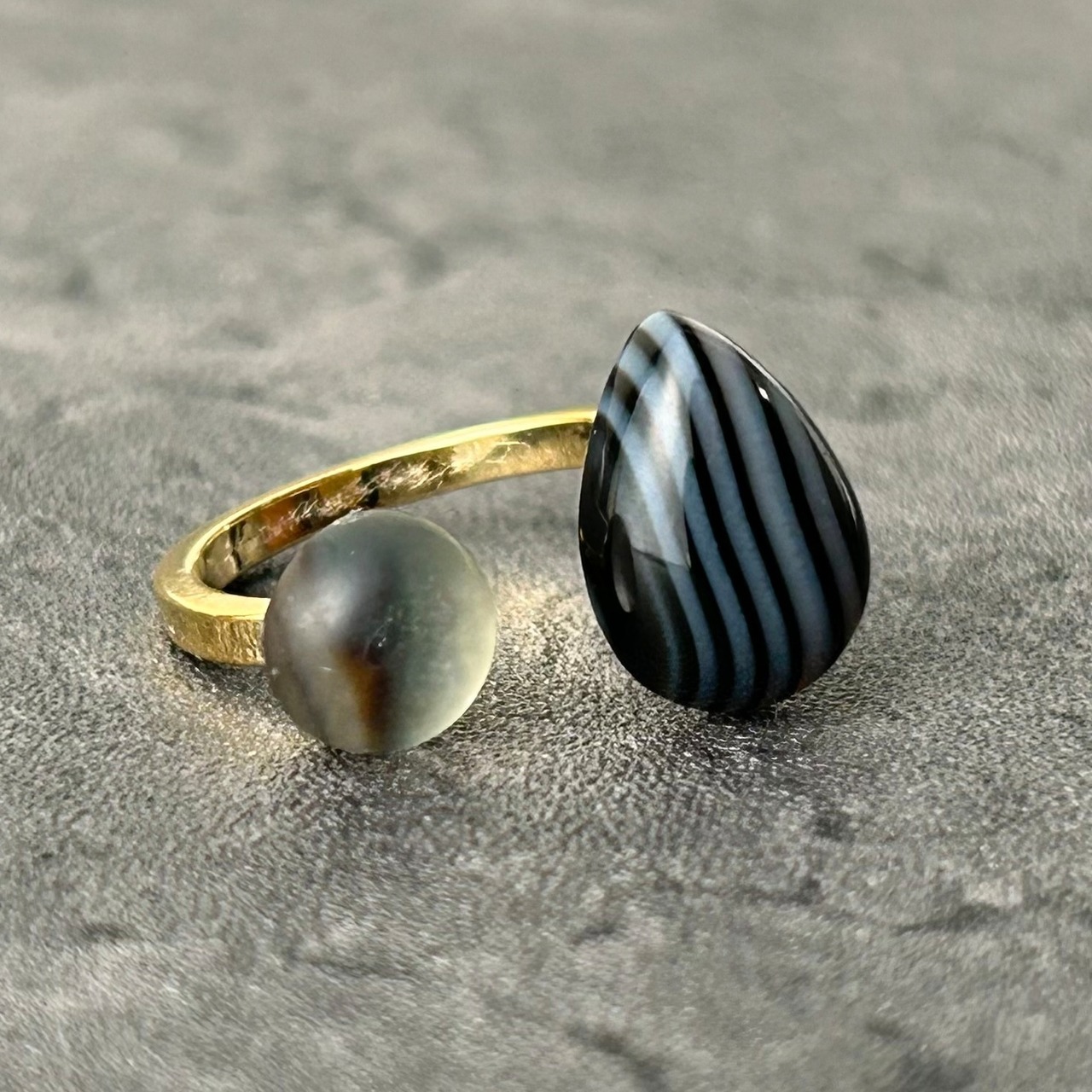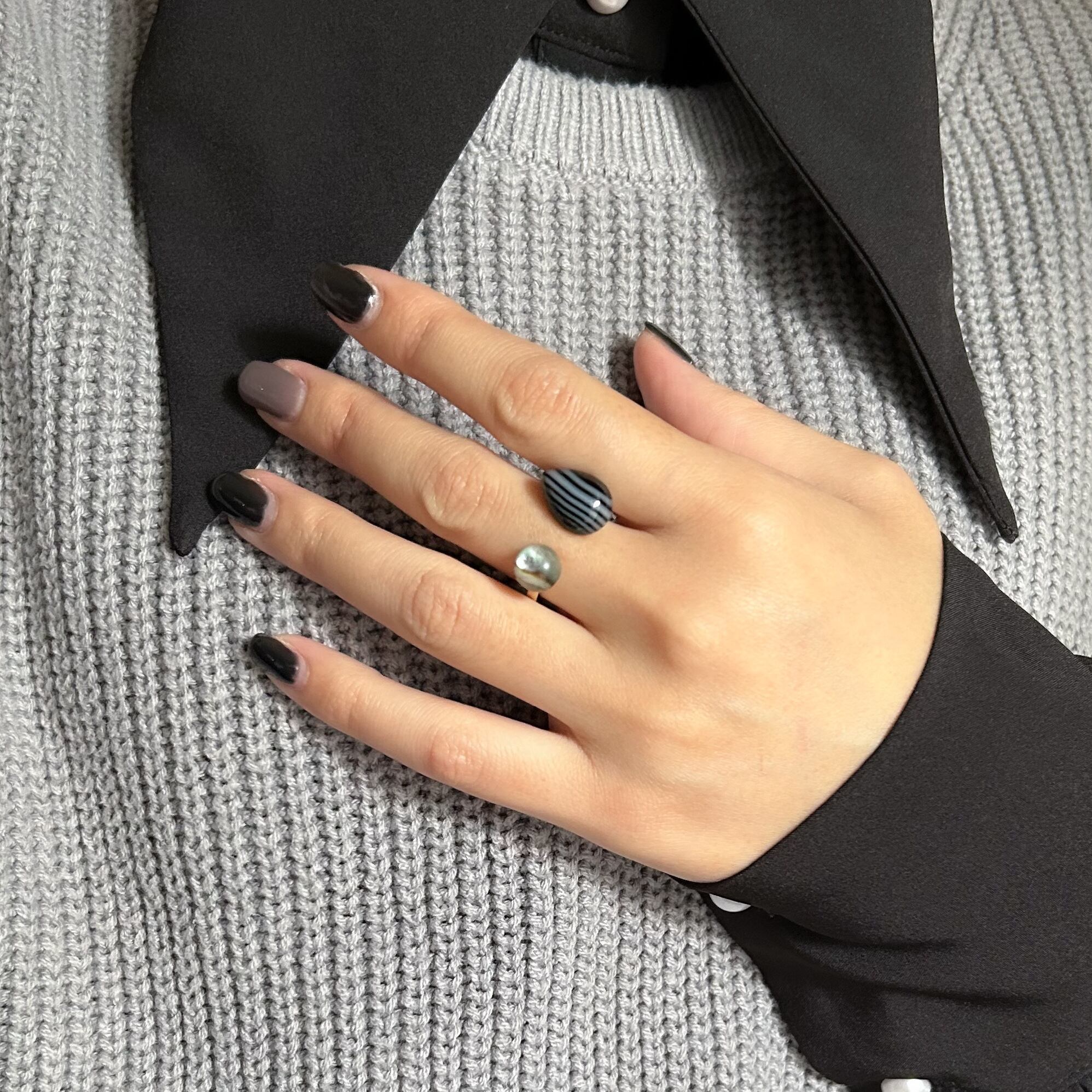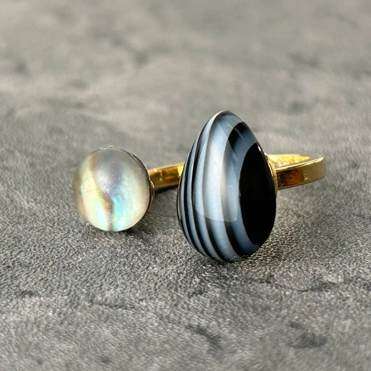 正反対の性質を持つ二つの石が、指元で一つの物語を紡ぎます。