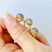 白のコーデにゴールドのアクセサリーがとても相性の良い【コッパーオパールリング】