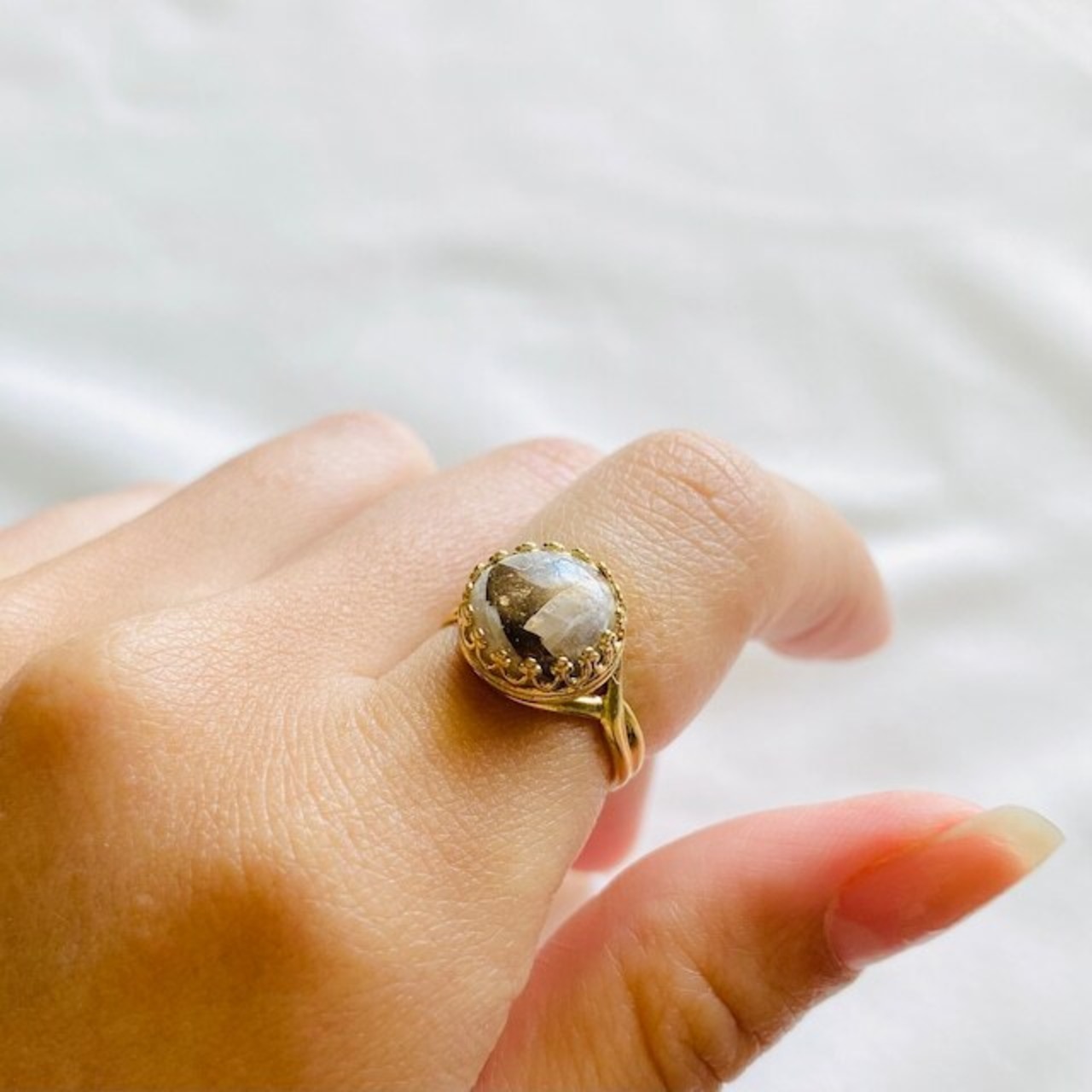 大きめのコッパーカルサイトを使ったキレイめクラウンリング