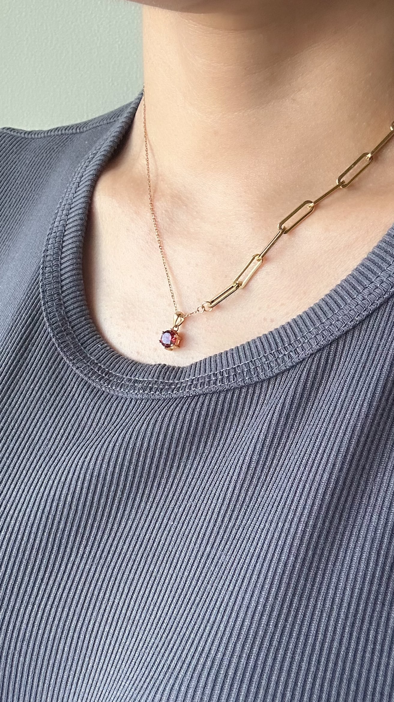 2種類のチェーンの境目にトップの天然石がくるように着用したり、付属のスライドボールを使ってチェーンの長さを調整しチョーカー風にすることもできます。