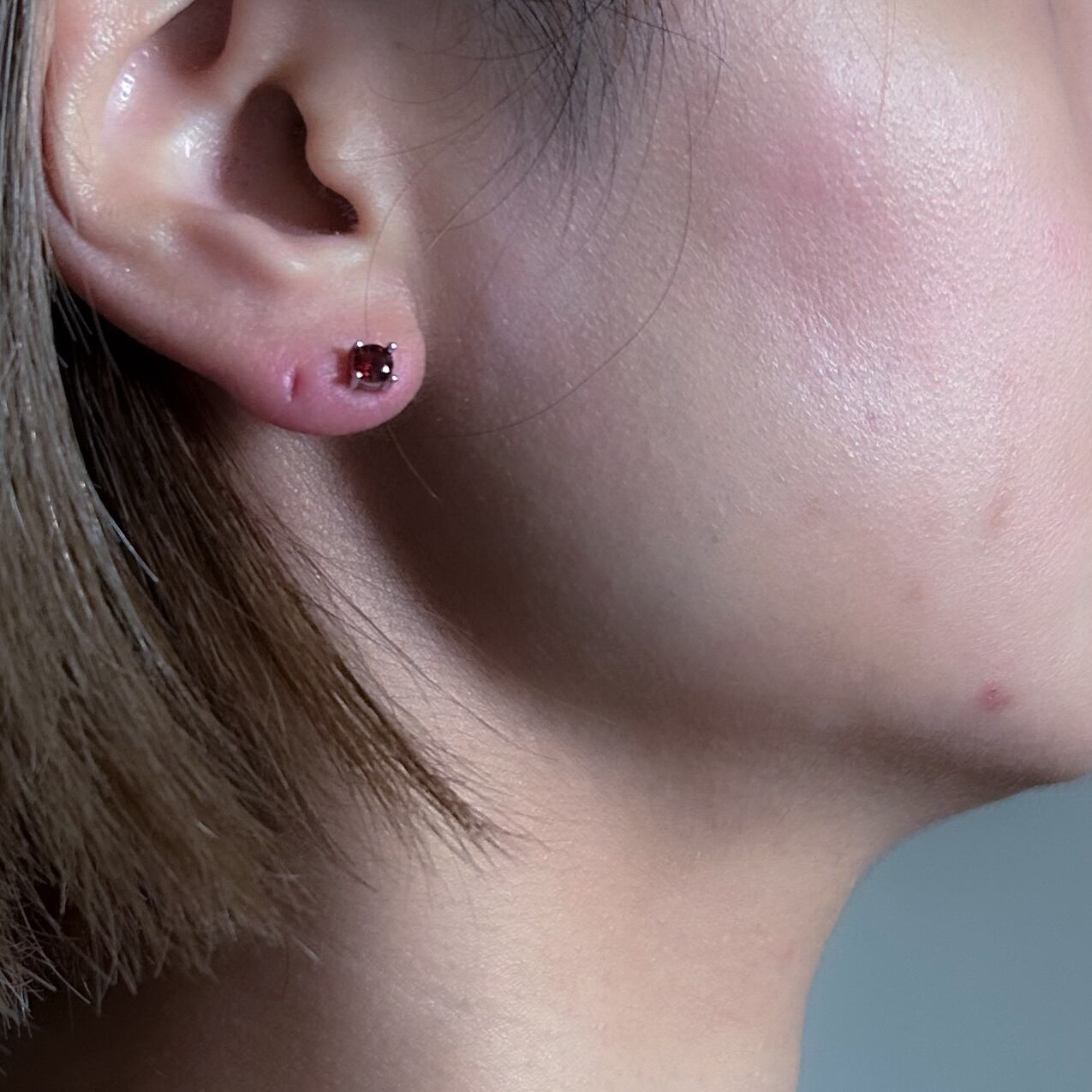 ガーネット×Silver925のアレルギー対応のスタッドピアス